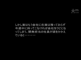 Overview: 「え、オーナーの息子さんが弊社のリアルマネキンをテストしたいですって!?そんな、困りますよ…今は在庫がないんです…」オーナーの息子に急遽、超リアルマネキンを一体届けることになった加藤。研究に研究を重ねてようやく完成までこぎつけた今年の目玉商品だ。ここでオーナーの息子の機嫌を損ねれば、発売延期なんていうことも十分ありえる。だが、窮地に立たされた加藤を救ったのは妻のある提案だった。「私をマネキンの代わりに送って!」加藤は苦渋の決断を下すが…。