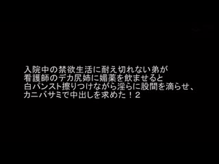 紹介: オナ禁生活中の弟は病院勤務で蒸れた清楚姉の白パンスト巨尻にフル勃起!我慢できず媚薬を飲ませると欲求不満姉は淫乱化!パンストから張り裂けそうなムチムチデカ尻を舐める!嗅ぐ!鷲掴む!カーテン越しに患者がいるのに白パンスト穿いたまま弟に近親相姦生挿入!挿入だけで美脚をガックガクさせながら無限絶頂!逃げ出そうとする弟をカニバサミロック!長引く入院生活で溜まり切った精子を大量膣内射精!